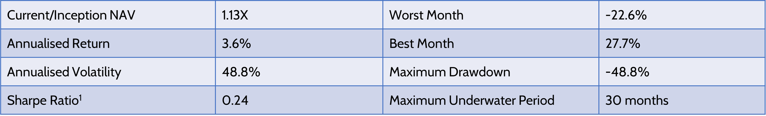 Ultra-efficient use of capital, with a target annualised volatility of 50% and expected 40% annualised returns